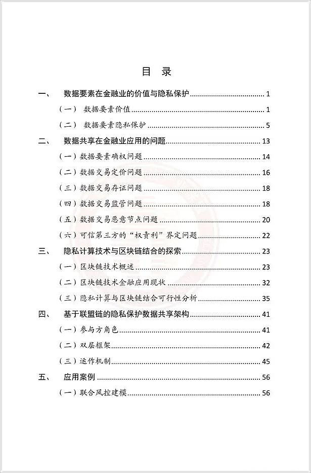該報(bào)告從數(shù)據(jù)要素在金融業(yè)的價(jià)值與隱私保護(hù)、數(shù)據(jù)共享在金融業(yè)應(yīng)用的問題、隱私計(jì)算技術(shù)與區(qū)塊鏈結(jié)合的探索、基于聯(lián)盟鏈的隱私保護(hù)數(shù)據(jù)共享架構(gòu)、應(yīng)用案例以及總結(jié)展望等方面進(jìn)行了全面的介紹,為聯(lián)盟鏈技術(shù)在金融行業(yè)隱私保護(hù)方面的應(yīng)用提供參考。