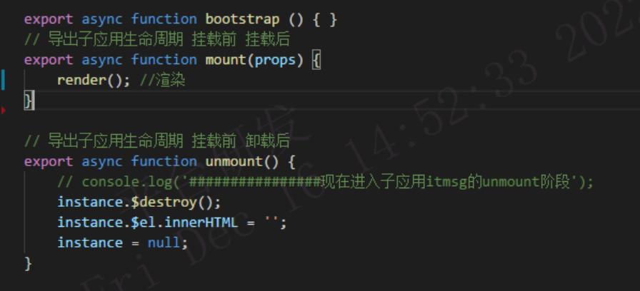 首先在應用入口增加qiankun的生命周期