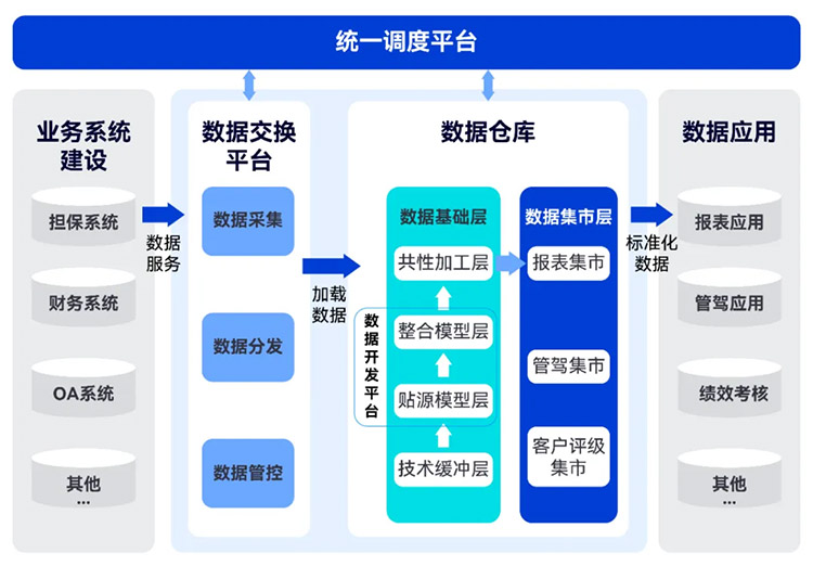 統(tǒng)一數(shù)據(jù)采集、消除數(shù)據(jù)孤島:將分散在擔(dān)保、財務(wù)、OA等不同系統(tǒng)的內(nèi)部數(shù)據(jù)及外部數(shù)據(jù)進(jìn)行整合,實現(xiàn) T+1、準(zhǔn)實時數(shù)據(jù)采集,形成統(tǒng)一的數(shù)據(jù)視圖,消除數(shù)據(jù)孤島,為龍江農(nóng)擔(dān)提供全面、準(zhǔn)確、及時的數(shù)據(jù)支持;