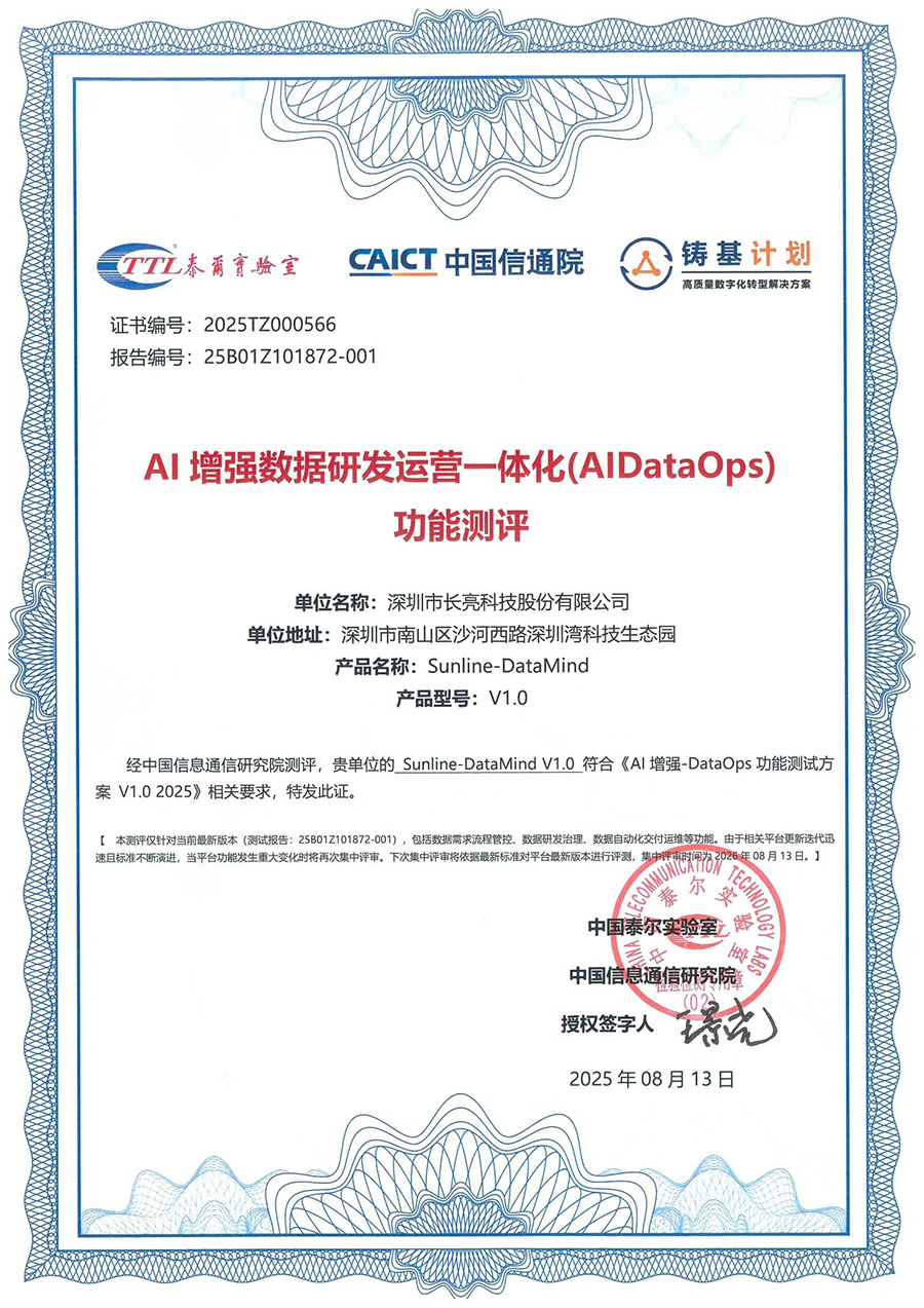 近日,長亮科技自主研發(fā)的數(shù)智一體化平臺(tái)DataMind,順利通過中國信息通信研究院(以下簡(jiǎn)稱“信通院”)與中國泰爾實(shí)驗(yàn)室聯(lián)合開展的 AI 增強(qiáng)數(shù)據(jù)研發(fā)運(yùn)營一體化(AIDataOps)功能測(cè)評(píng),標(biāo)志著 DataMind 在數(shù)據(jù)全鏈路管理的智能化、標(biāo)準(zhǔn)化能力上得到國家級(jí)權(quán)威機(jī)構(gòu)的高度認(rèn)可,為金融行業(yè)數(shù)據(jù)價(jià)值釋放樹立了標(biāo)桿范式。