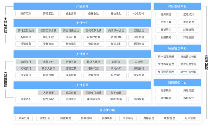 基于智能化支付領(lǐng)域模型進(jìn)行構(gòu)建,對建模成果進(jìn)行功能分析和定義,設(shè)計(jì)分解并承接建模成果,達(dá)到智能編碼目標(biāo),使支付領(lǐng)域的交付轉(zhuǎn)向標(biāo)準(zhǔn)化、結(jié)構(gòu)化、可視化,裝配國內(nèi)外匯款產(chǎn)品,采用交易和對賬分離,提供新老系統(tǒng)并行的無風(fēng)險(xiǎn)切換方案,具備智能路由、智能入賬、智能記憶、智能分析、智能組包、智能回復(fù)、智能回放等特點(diǎn),為金融機(jī)構(gòu)的支付提供業(yè)務(wù)研發(fā)運(yùn)營一體化方案。長亮科技支付業(yè)務(wù)產(chǎn)品包含智能路由、行內(nèi)轉(zhuǎn)賬、二代支付、超級網(wǎng)銀、城銀清、農(nóng)信銀、網(wǎng)聯(lián)、銀聯(lián)、人民幣跨境支付、數(shù)字人民幣、SWIFT、RTGS、FPS、境內(nèi)外幣支付、支付寶、微信、境外各國家和地區(qū)等支付渠道,支持接入傳統(tǒng)核心業(yè)務(wù)系統(tǒng)、互聯(lián)網(wǎng)金融核心業(yè)務(wù)系統(tǒng)、電商平臺、互聯(lián)網(wǎng)收單業(yè)務(wù),具備高度的安全運(yùn)營體系設(shè)計(jì),提供統(tǒng)一的支付業(yè)務(wù)管理、便捷的業(yè)務(wù)操作、業(yè)務(wù)流程的實(shí)現(xiàn)、支付行為管控、風(fēng)險(xiǎn)控制自動(dòng)化處理等。
