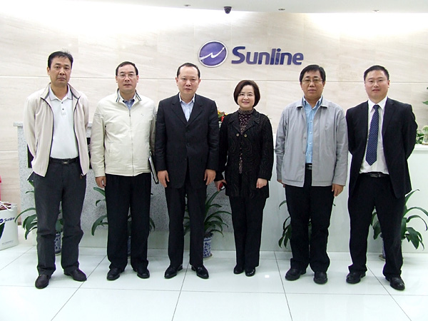 [左起:軟件園管理中心徐紹禹主任、陳慶云副處長、王長春總裁、邱宣副主任、沙新華處長、總裁辦孫世勝]