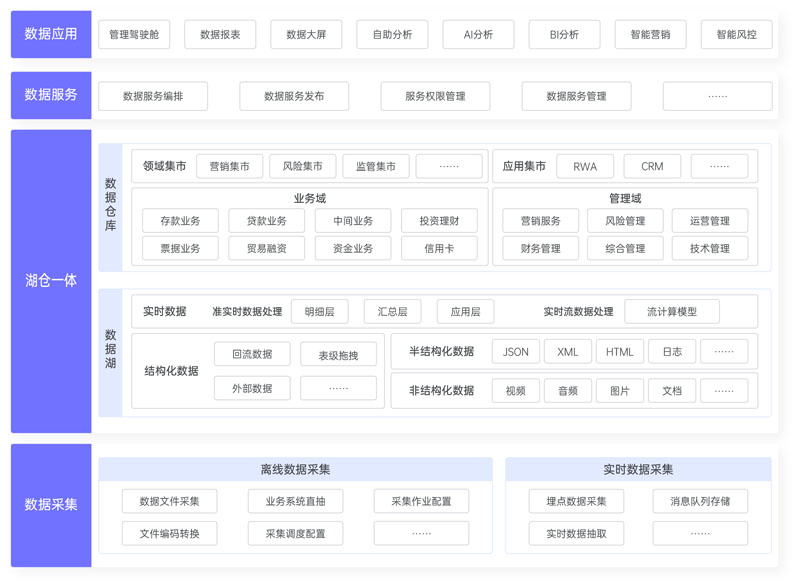 融合數(shù)據(jù)湖與數(shù)據(jù)倉(cāng)庫(kù)的優(yōu)勢(shì),形成一體化的數(shù)據(jù)底層平臺(tái),通過(guò)湖倉(cāng)一體技術(shù),使得數(shù)據(jù)平臺(tái)底層支持多數(shù)據(jù)類(lèi)型統(tǒng)一存儲(chǔ),實(shí)現(xiàn)數(shù)據(jù)在數(shù)據(jù)湖、數(shù)據(jù)倉(cāng)庫(kù)之間無(wú)縫調(diào)度和管理,并實(shí)現(xiàn)統(tǒng)一數(shù)據(jù)服務(wù)以支撐數(shù)據(jù)應(yīng)用及分析。