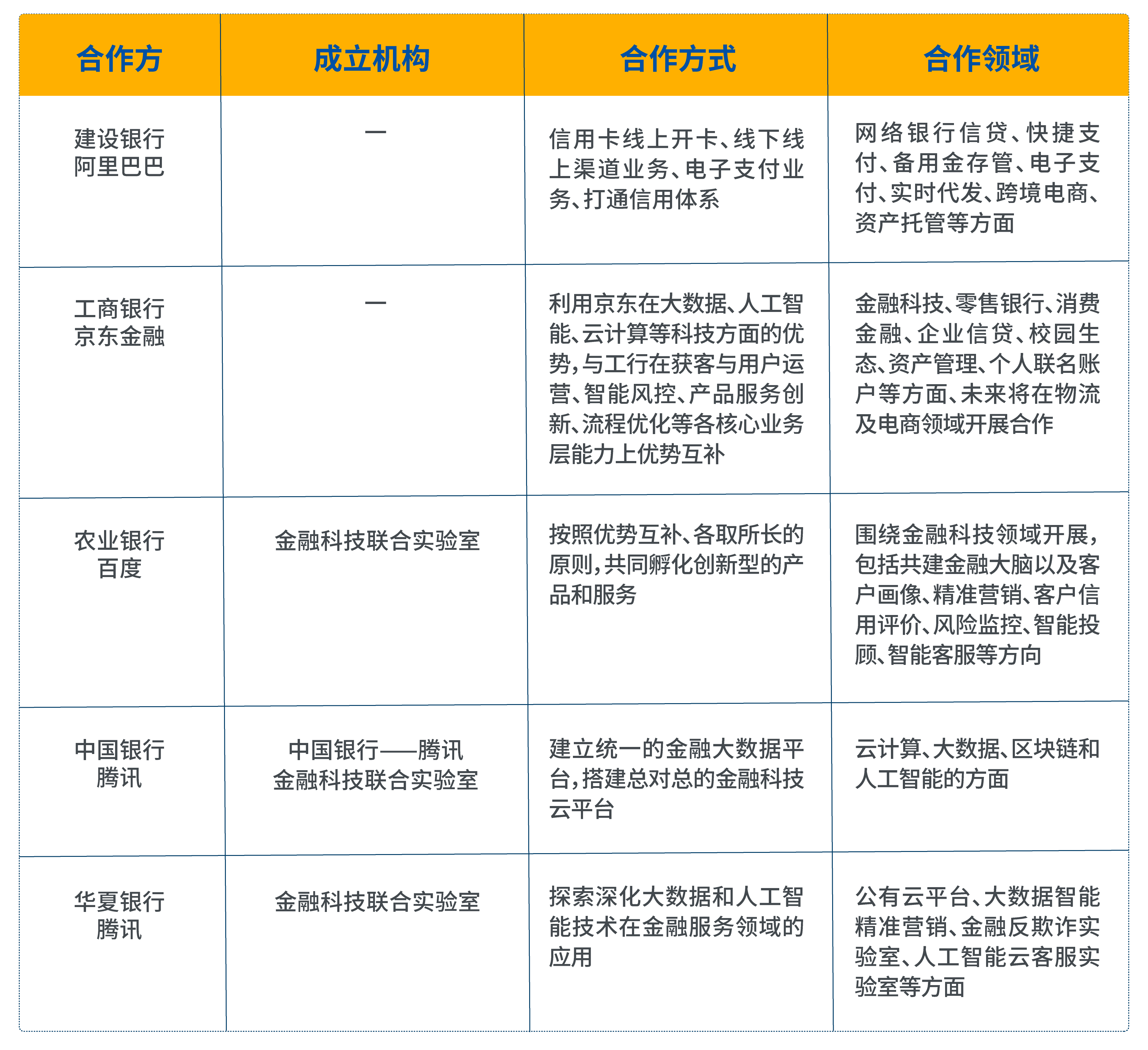 綜合來看,銀行與互聯網巨頭間的合作主要圍繞金融科技領域,云計算、大數據應用、資產管理風險監控等方面是合作的幾個重點。而這些重點,剛好是雙方取長補短的地方。