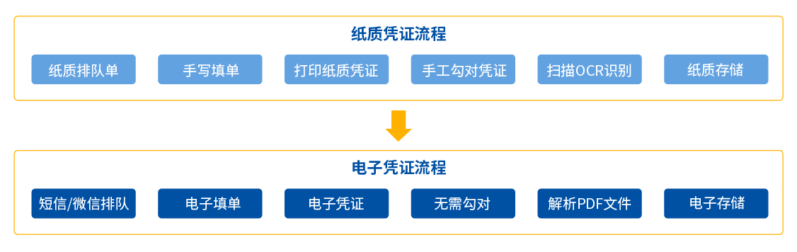再次,通過整合電子簽名、電子印章、電子回單等技術,實現業務辦理全程無紙化。實現以電子單據代替紙質憑證、以自動監督代替人工監督、電子存儲代替庫房存儲等功能,智能、高效地解決了傳統網點業務流程帶來的信息共享、紙質單據、憑證傳遞等效率及體驗問題。