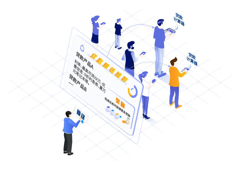 c端用戶通過手機銀行APP或網(wǎng)上銀行做貸款計算器的時候,系統(tǒng)可秒級推送貸款類產(chǎn)品,如完成任務,則會立即獲得相應的獎勵。