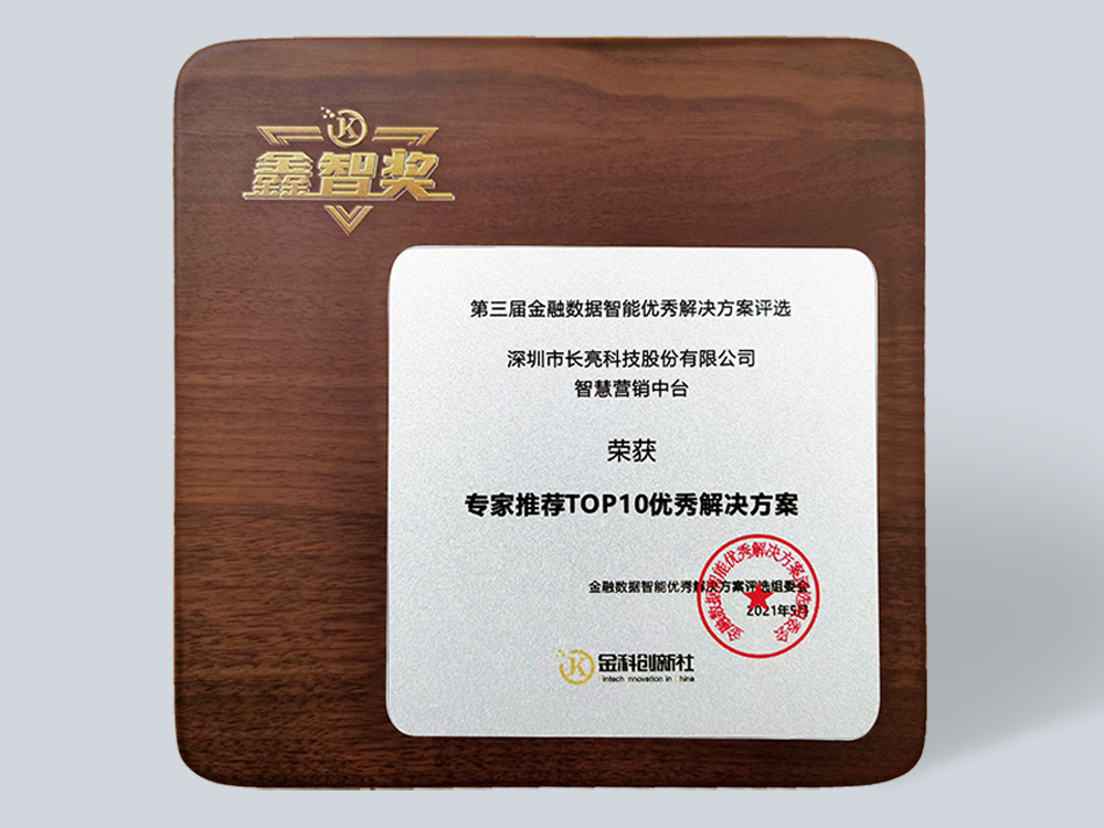 經(jīng)過5場線上答辯,以及來自國家科技評估中心、中國人民銀行以及銀行、保險、證券、基金等金融機構(gòu)的52位評審專家和陪審專家兩輪打分、點評,長亮科技智慧營銷中臺憑借在數(shù)據(jù)標簽、畫像、算法模型、營銷活動、營銷模板等方面的先進性與成熟性,獲得“專家推薦TOP10優(yōu)秀解決方案”、“營銷創(chuàng)新優(yōu)秀解決方案”兩項大獎。