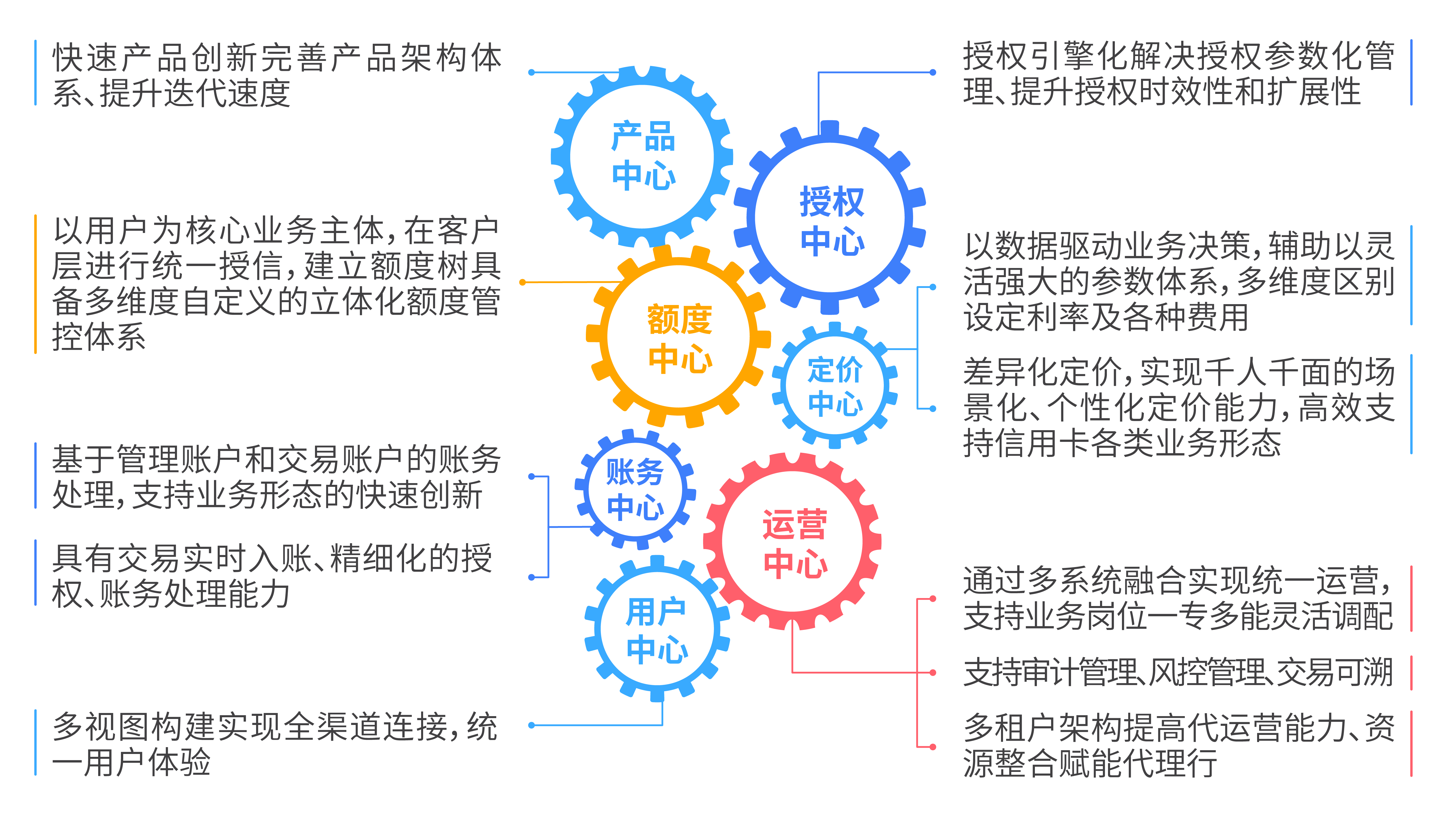 新一代信用卡核心系統(tǒng)基于微服務(wù)化的基本思想,建立各種彼此獨(dú)立又互相協(xié)作的產(chǎn)品中心、定價(jià)中心、額度中心、授權(quán)中心、賬務(wù)中心、運(yùn)營中心、用戶中心等,并以此為依托進(jìn)行產(chǎn)品創(chuàng)新和業(yè)務(wù)的集中運(yùn)營,從多層面有效支撐銀行信用卡業(yè)務(wù)的飛速發(fā)展。